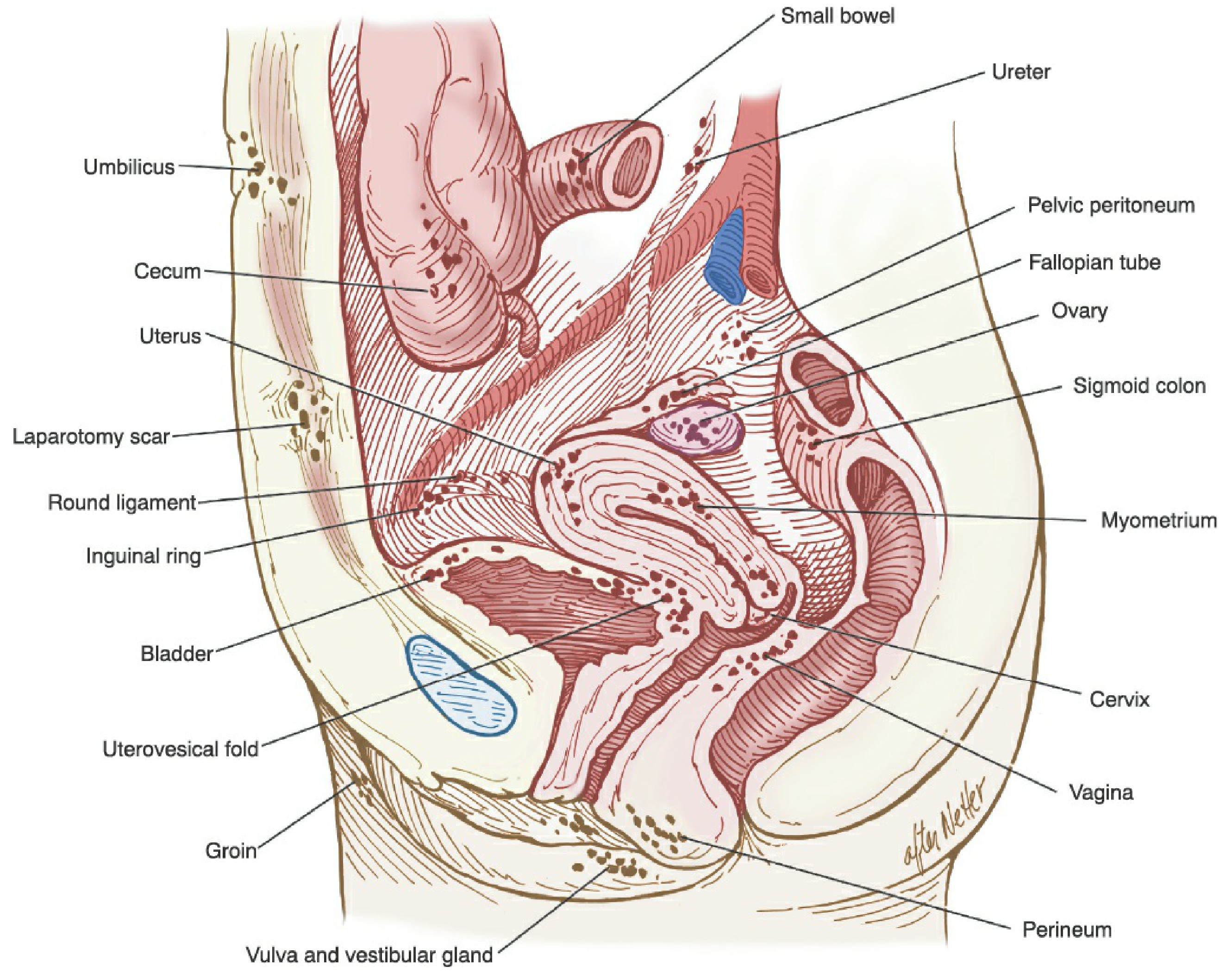 Figure 13-1: Pelvic endometriosis sites — Berek & Novak's Gynecology