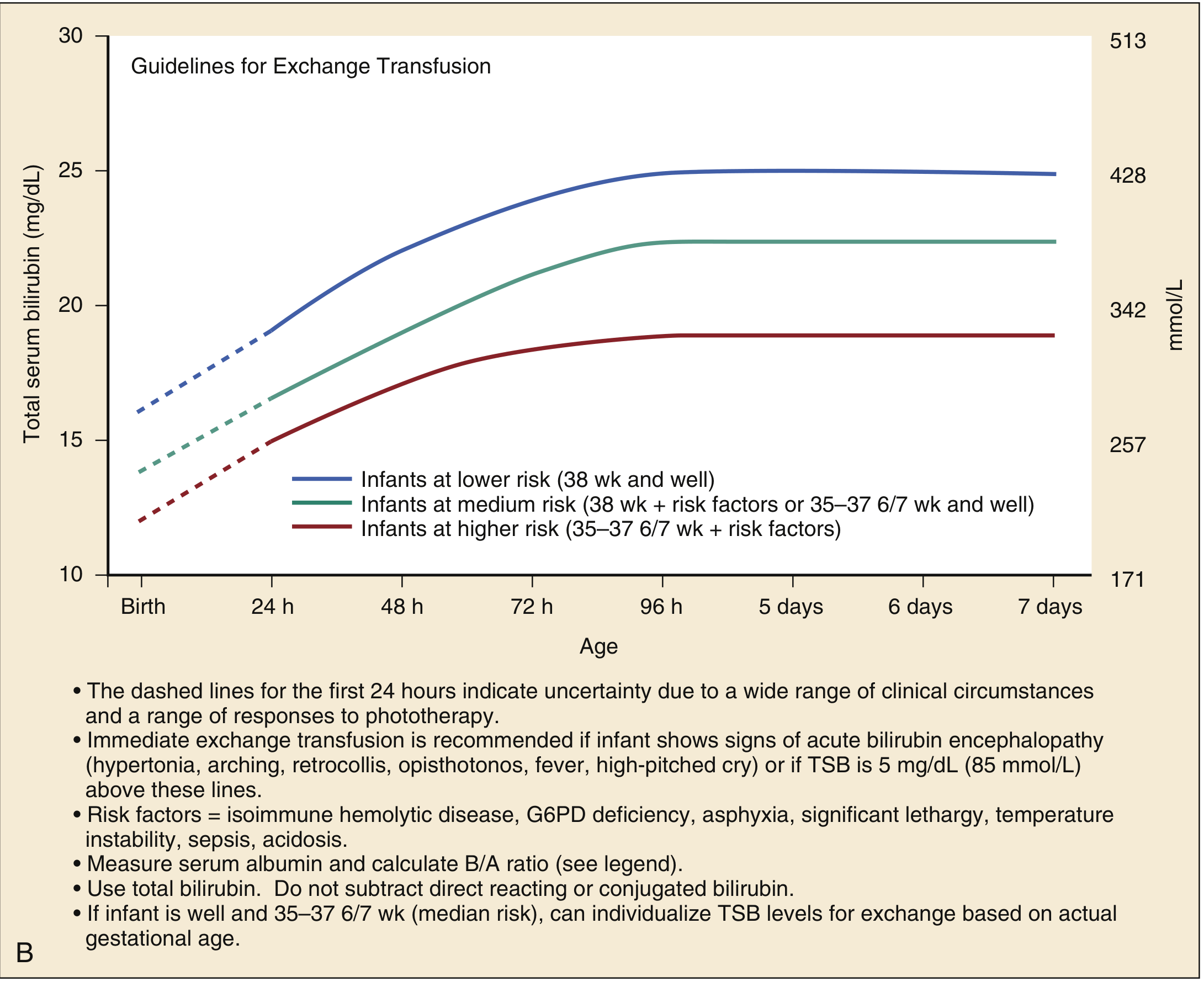 - Indicated if TSB is rising despite intensive phototherapy, or TSB is within 2–3 mg/dL of exchange transfusion threshold
