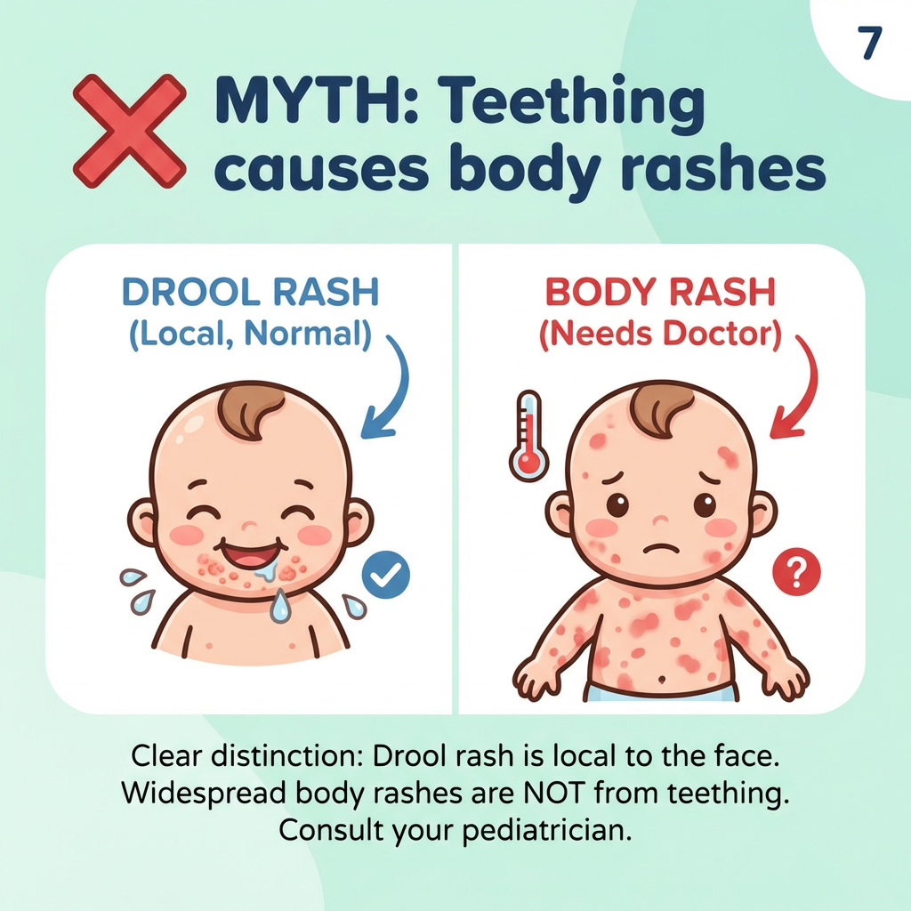 Headline: β MYTH: "Teething causes rashes all over the body"