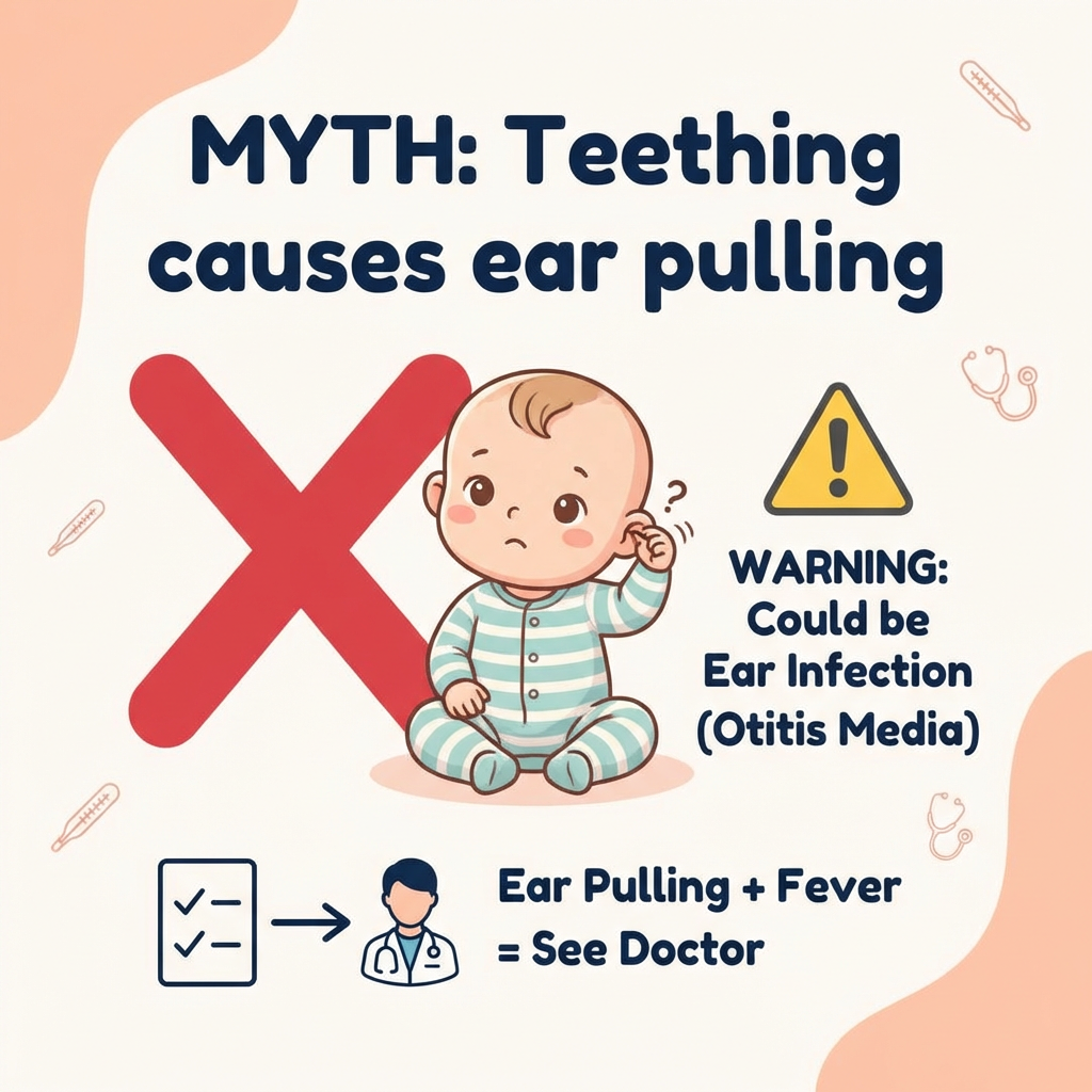 π« The belief: If a teething baby pulls their ear, it's just tooth pain referred to the ear.