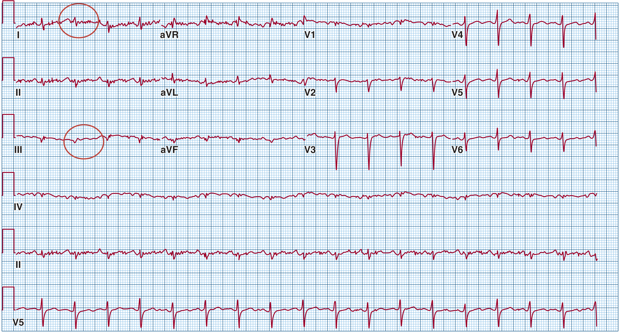 | ARVC | Epsilon waves, prolonged terminal QRS V1–V3, T-wave inversion V1–V5 |