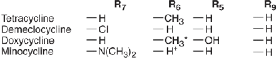Note: Doxycycline lacks an –OH at position 6, which accounts for its superior lipophilicity and pharmacokinetics compared to tetracycline.
