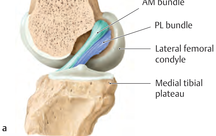 ACL anatomy showing AM and PL bundles and their femoral/tibial footprints — General Anatomy and Musculoskeletal System (THIEME Atlas)