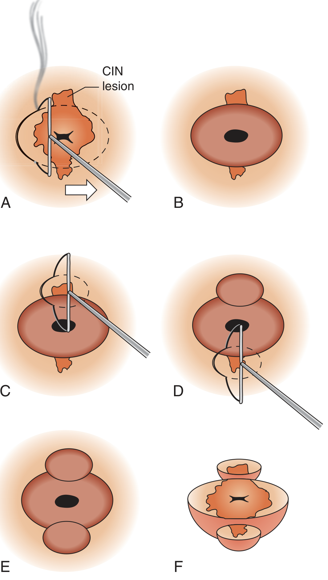 LEEP uses thin wire loop electrodes carrying high-frequency electrical current to excise the entire cervical transformation zone (TZ). It is currently the most widely used treatment for biopsy-confirmed CIN 2 and CIN 3.