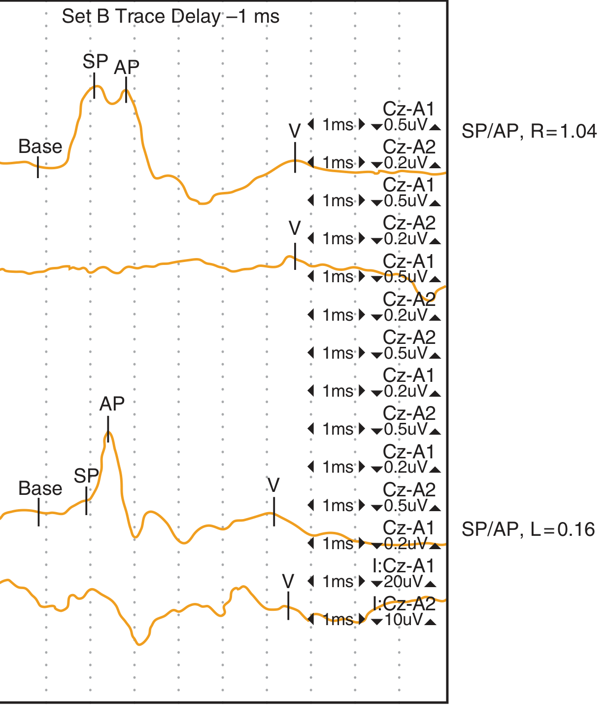 - Pathological significance: An abnormally large/negative SP indicates endolymphatic hydrops (Ménière disease)