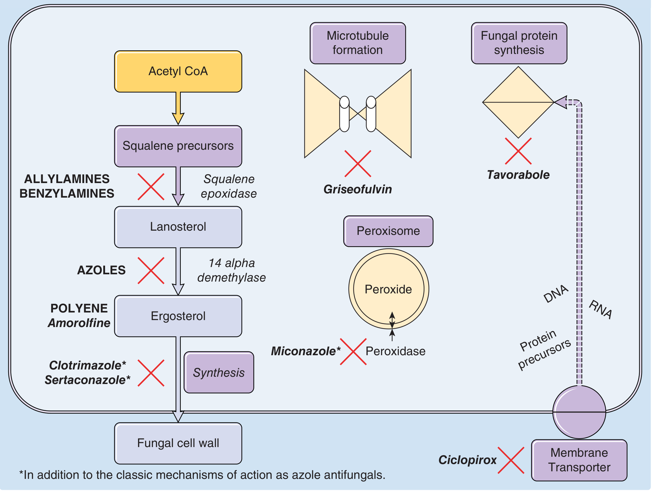 Figure 188-1. Mechanisms of action of antifungal agents — Fitzpatrick's Dermatology