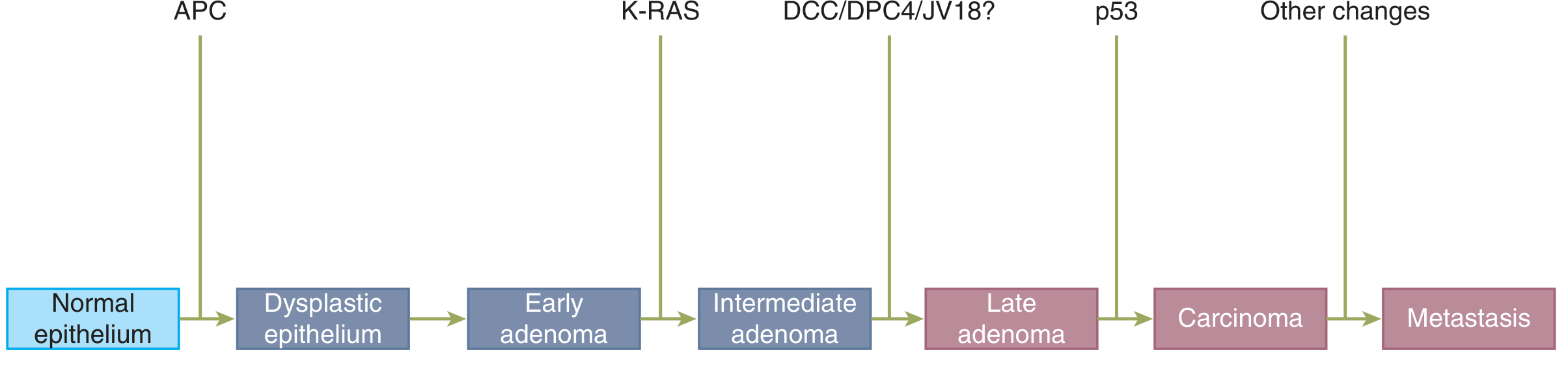 Progression from normal colonic epithelium to carcinoma and metastasis —