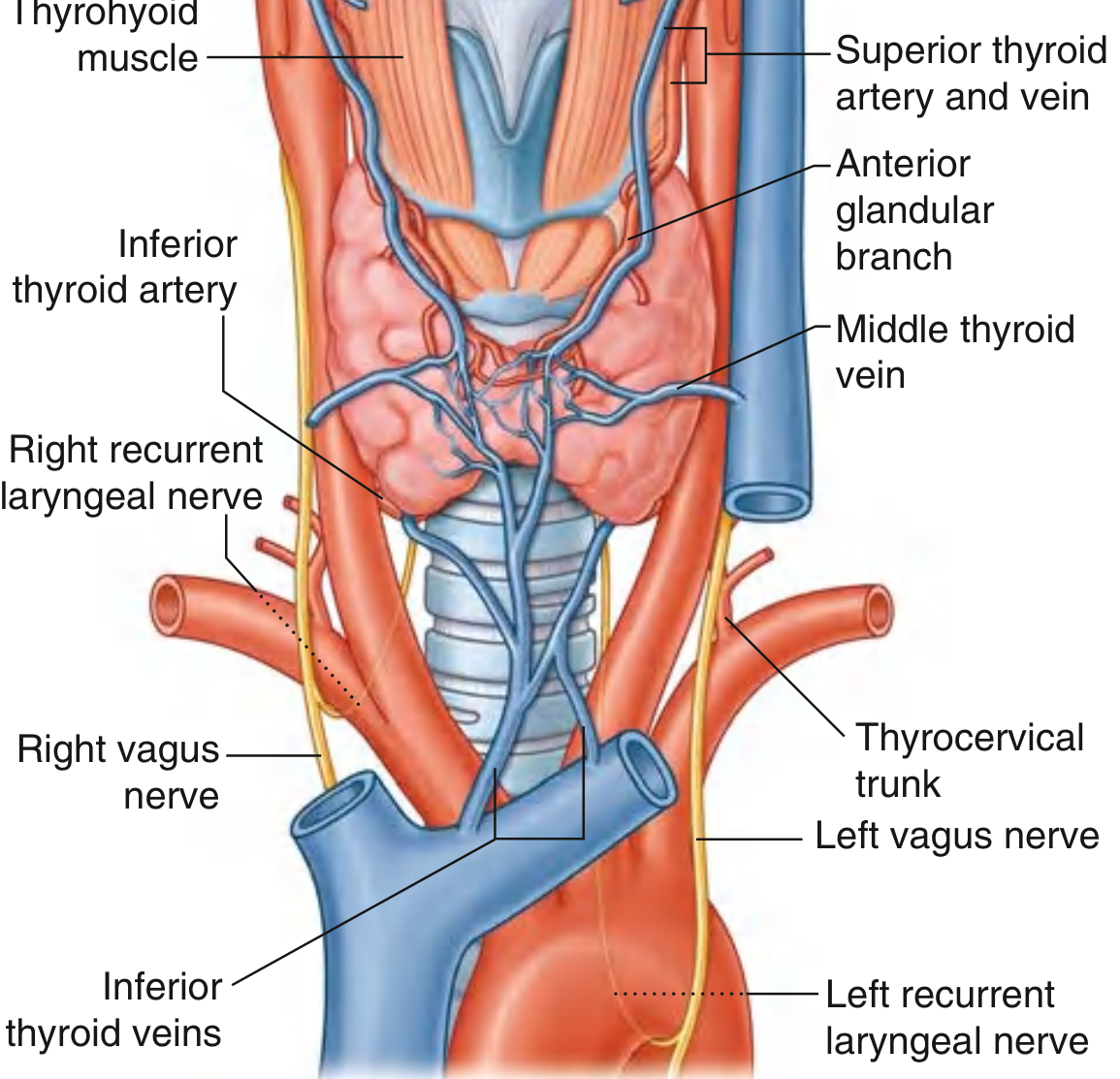 📌 Surgical note: The middle thyroid vein has no arterial counterpart and is divided early in mobilization of the lobe. The inferior thyroid veins form a plexus in front of the trachea — danger during low thyroid or tracheostomy access.