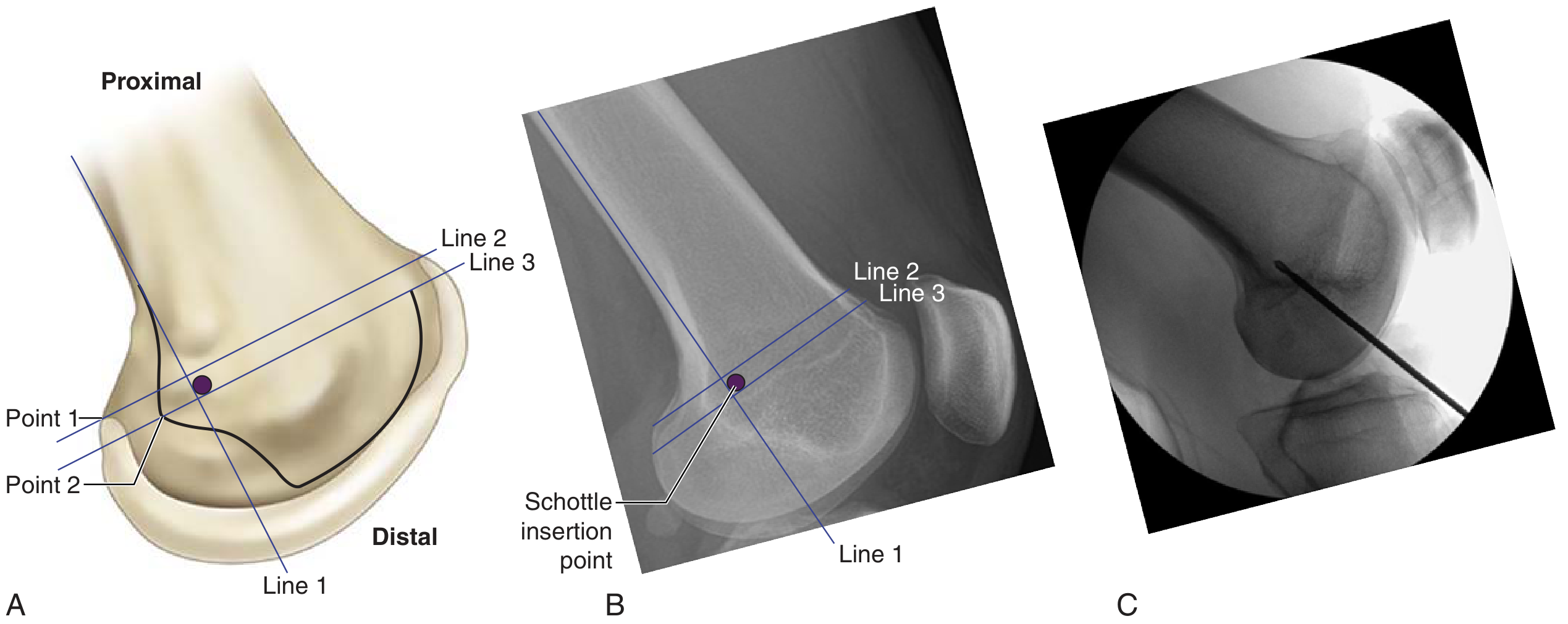 - The Schottle point is identified using intraoperative fluoroscopy on a true lateral view