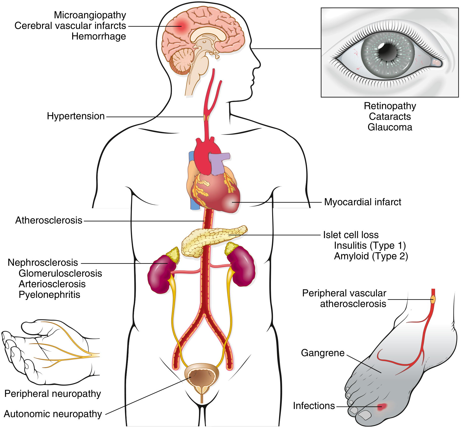 FIG. 18.22 Long-term complications of diabetes mellitus — Robbins & Kumar Basic Pathology
