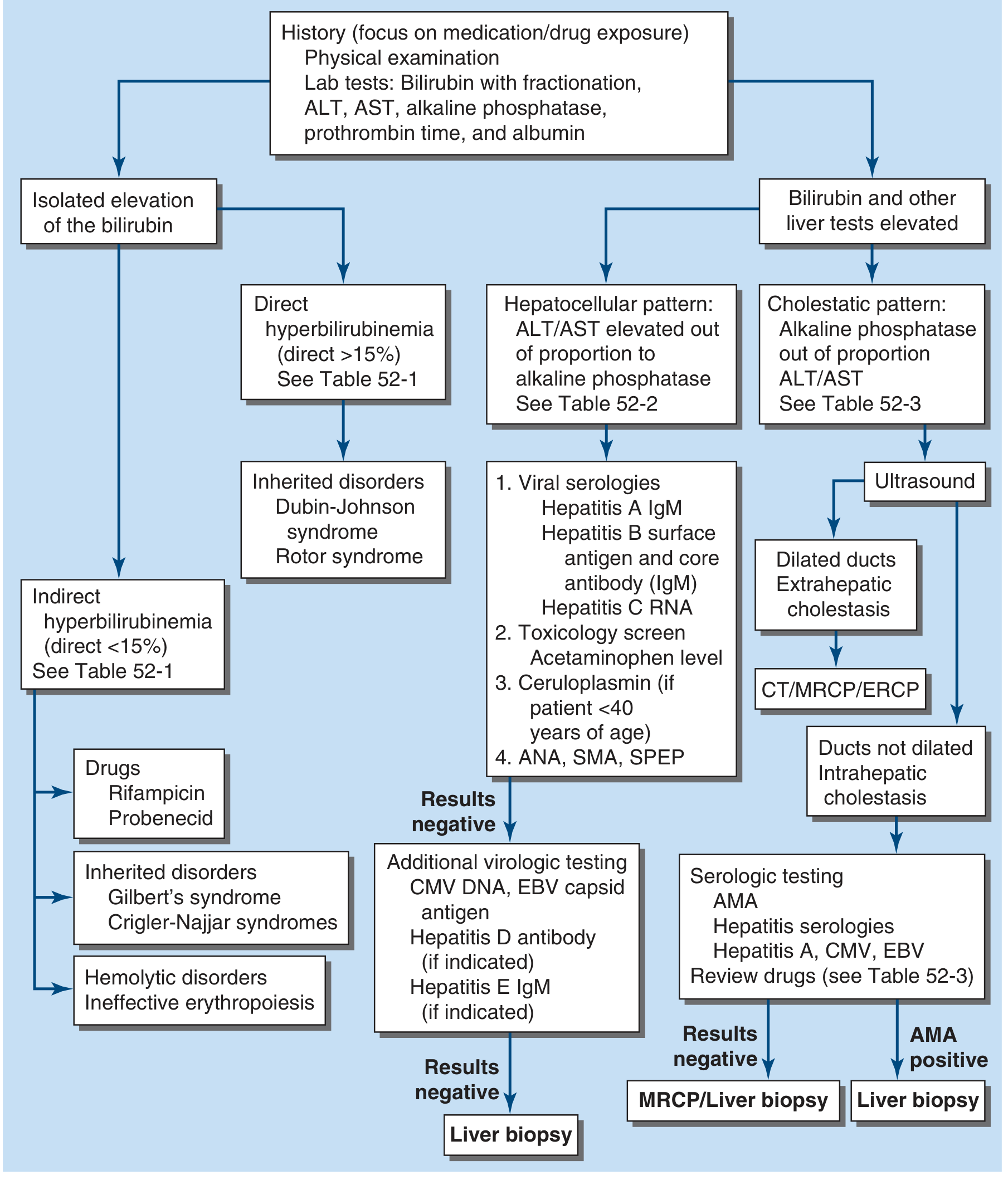 Diagnostic algorithm for jaundice (Harrison's 22E, Fig. 52-1):