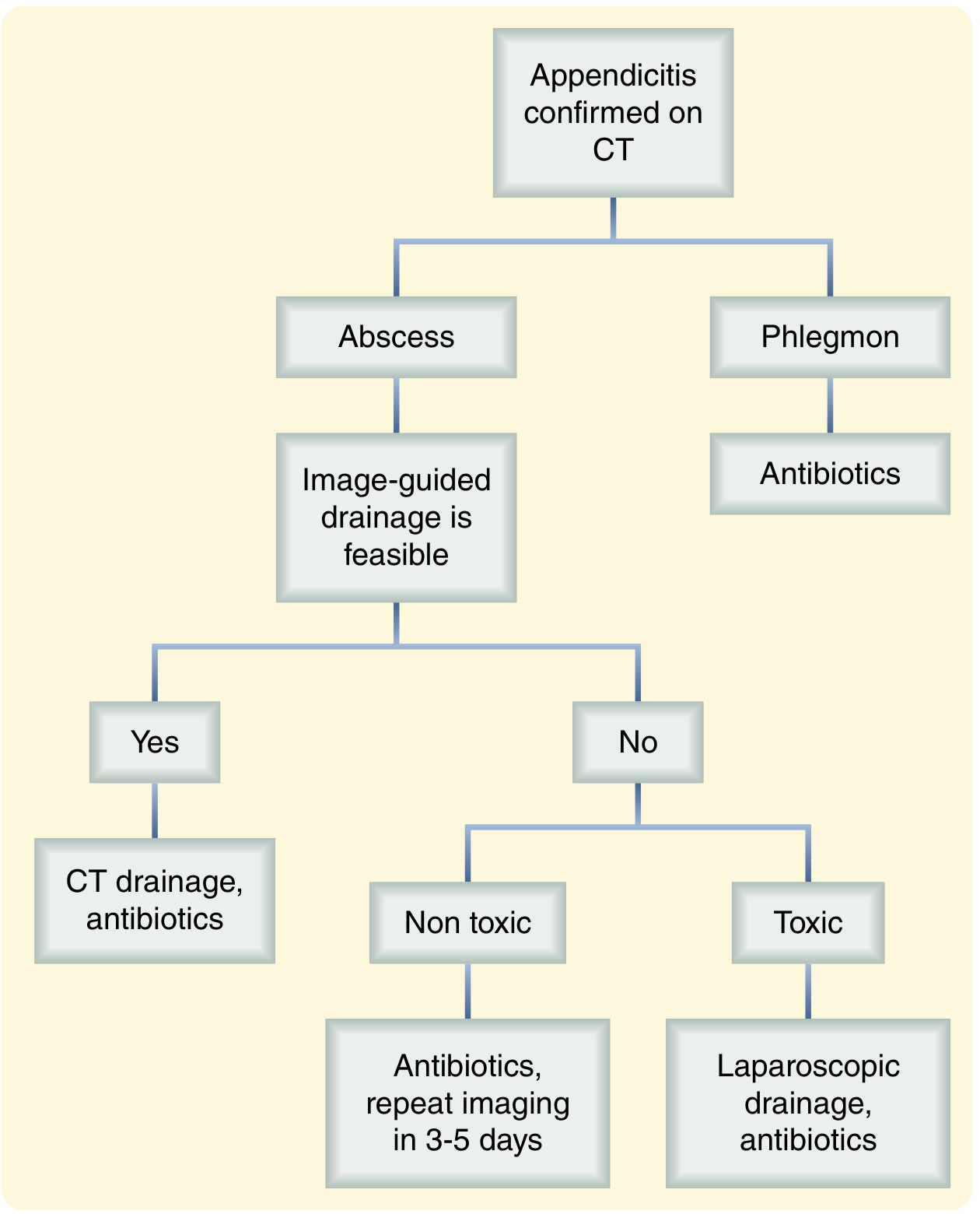 FIGURE: Suggested algorithm for managing acute appendicitis with abscess or phlegmon. — Sabiston Textbook of Surgery