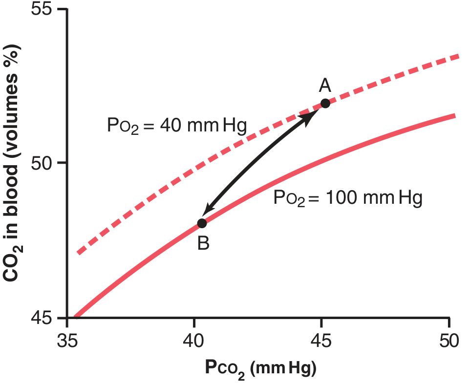 | Hb state | Deoxy-Hb (better CO₂ carrier) | Oxy-Hb (releases CO₂) |