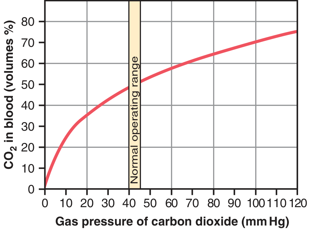 | Normal PCO₂ range | 40 mm Hg (arterial) → 45 mm Hg (venous) |