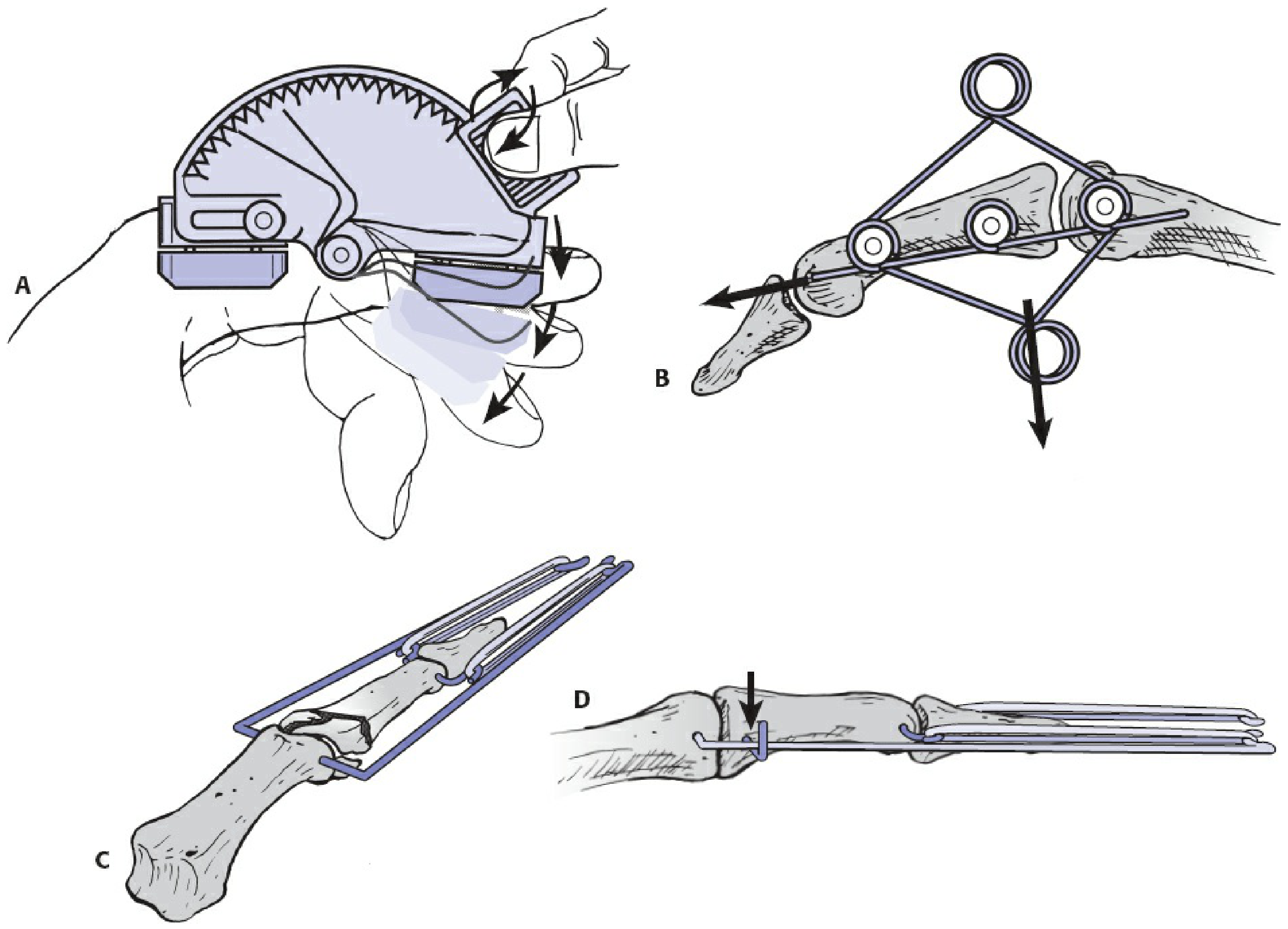 - Dynamic traction devices were therefore developed — a K-wire through the middle phalanx shaft is connected to a hinge construct centered at the PIP joint axis