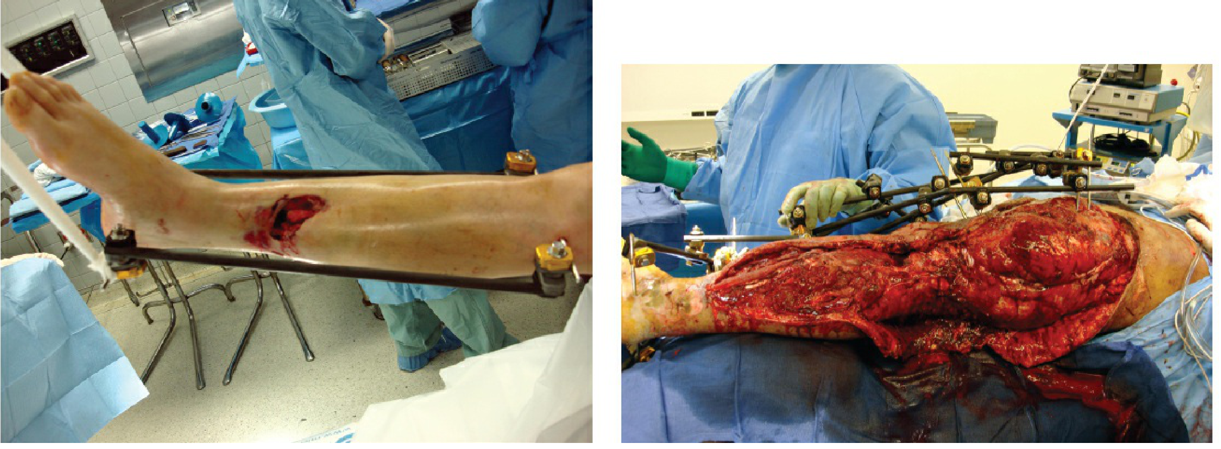 | Spanning external fixator | Distal radius, tibial pilon, knee, ankle |