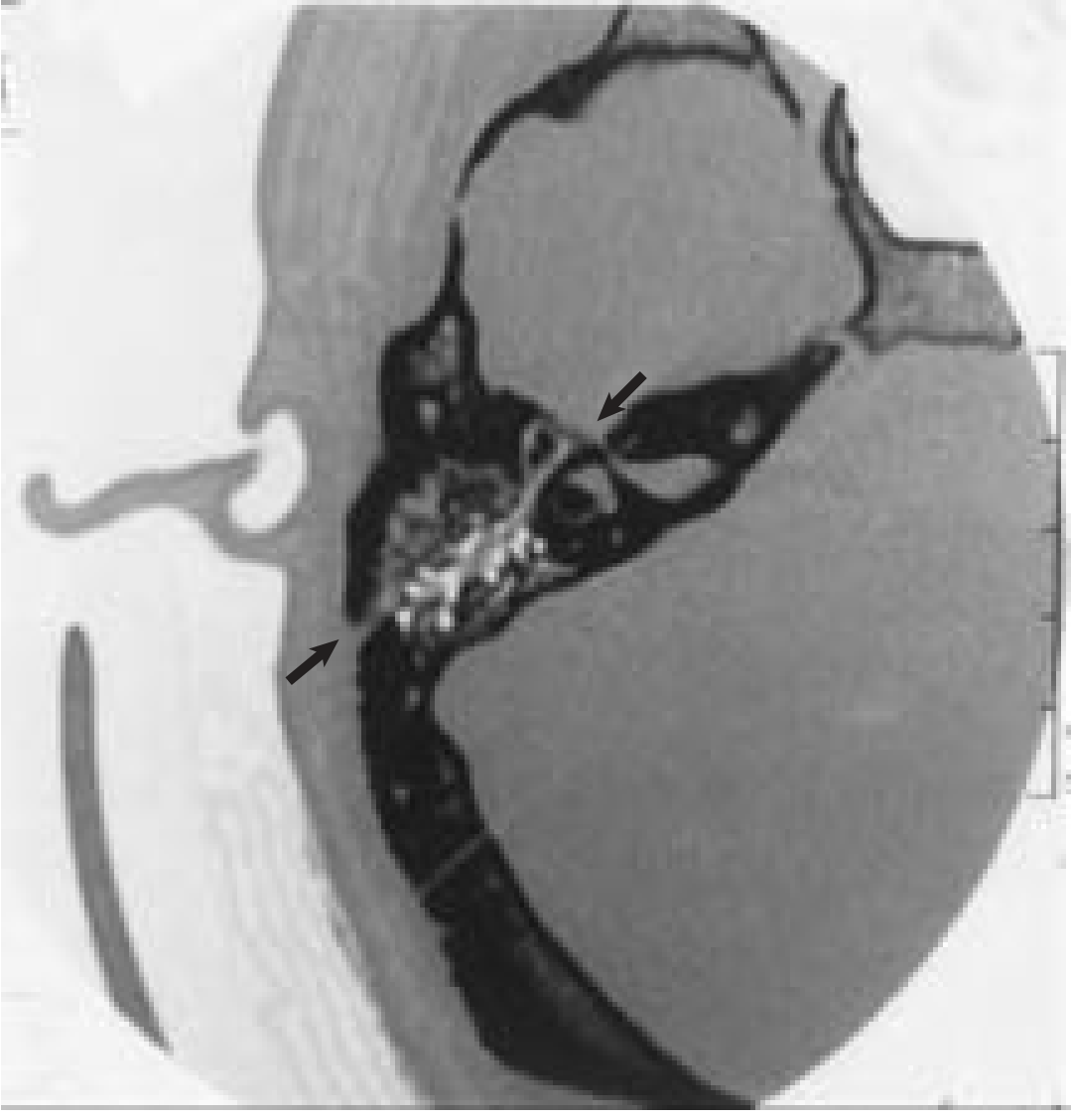 | Investigation of choice | HRCT temporal bone (1 mm cuts) |