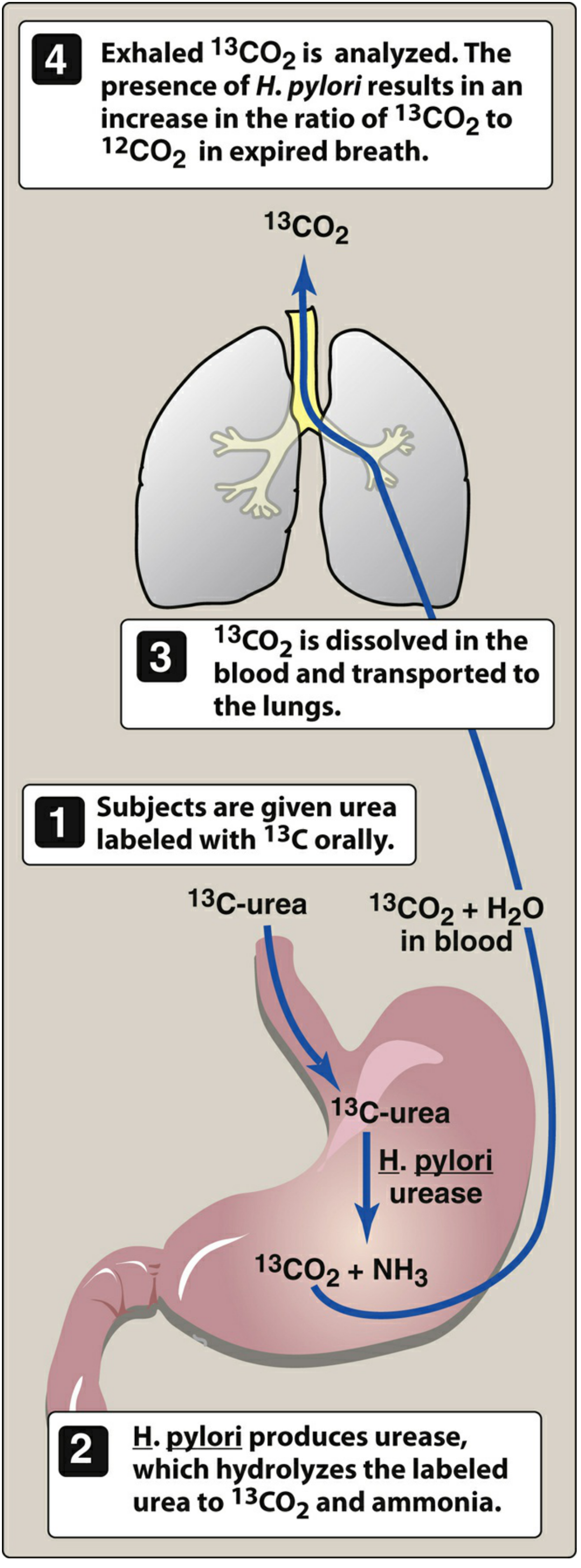 | Urea breath test (ΒΉΒ³C) | Most accurate non-invasive test; gold standard to confirm eradication |