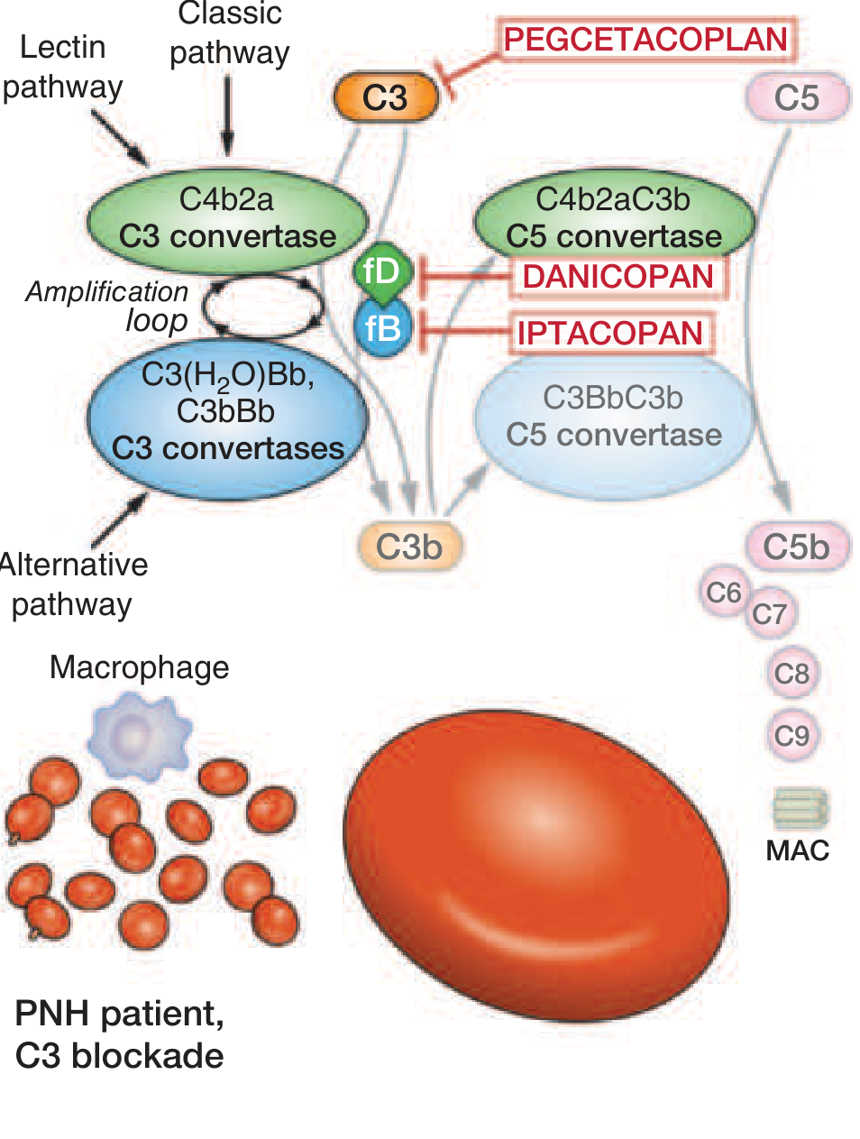 | Pegcetacoplan | C3 | SC twice weekly | Blocks both intravascular AND extravascular hemolysis; corrects anemia more completely |