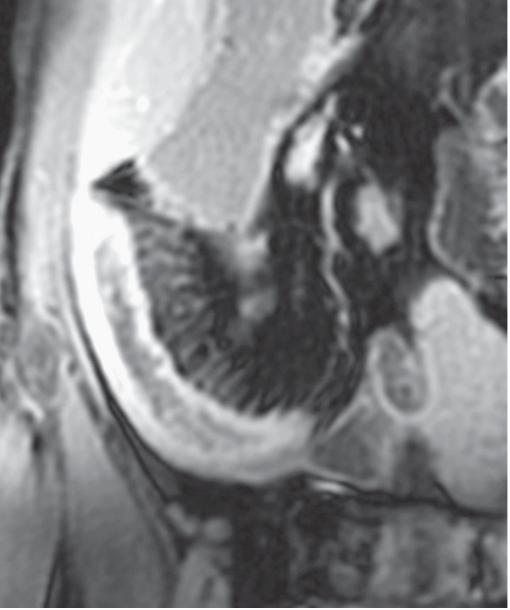 MR enterography (coronal view) showing mural hyperenhancement, mural thickening, and the comb sign in terminal ileal CD. (Sleisenger and Fordtran's GI and Liver Disease)