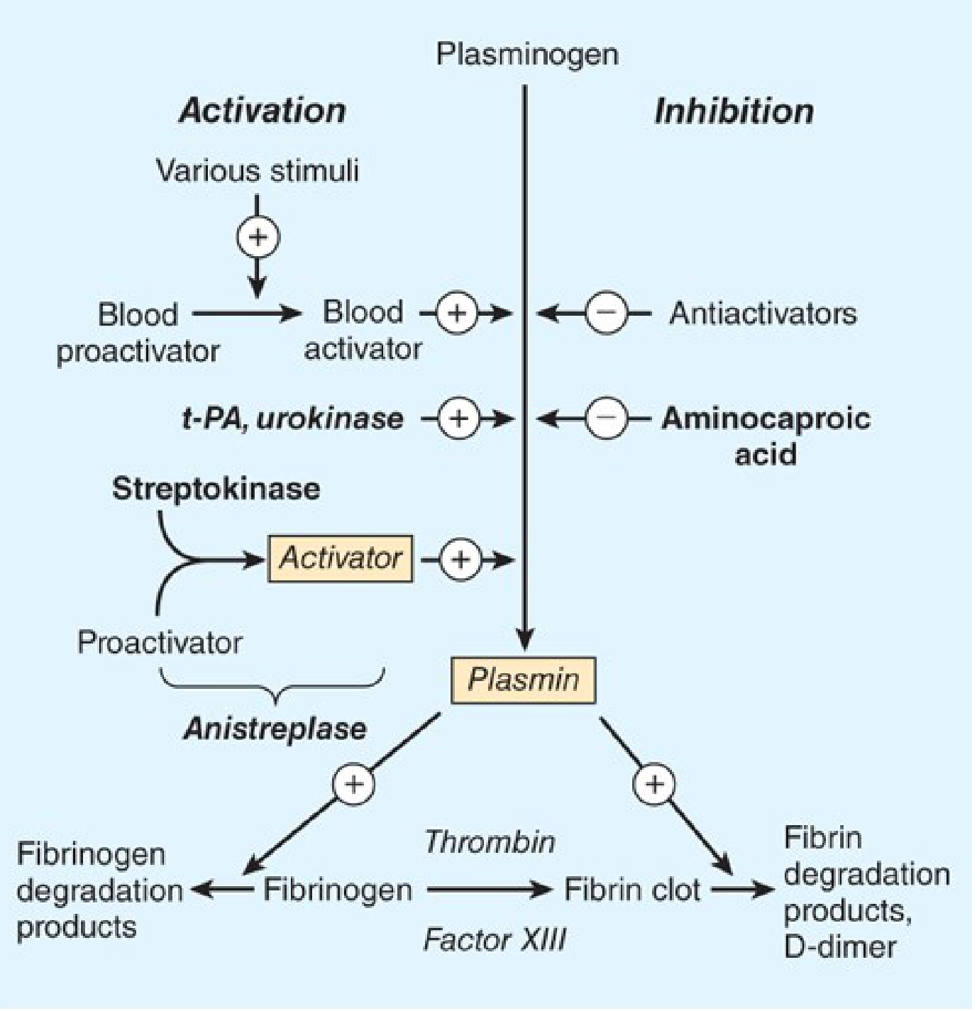 | Plasminogen activator | tPA (physiologic); released by endothelial cells |