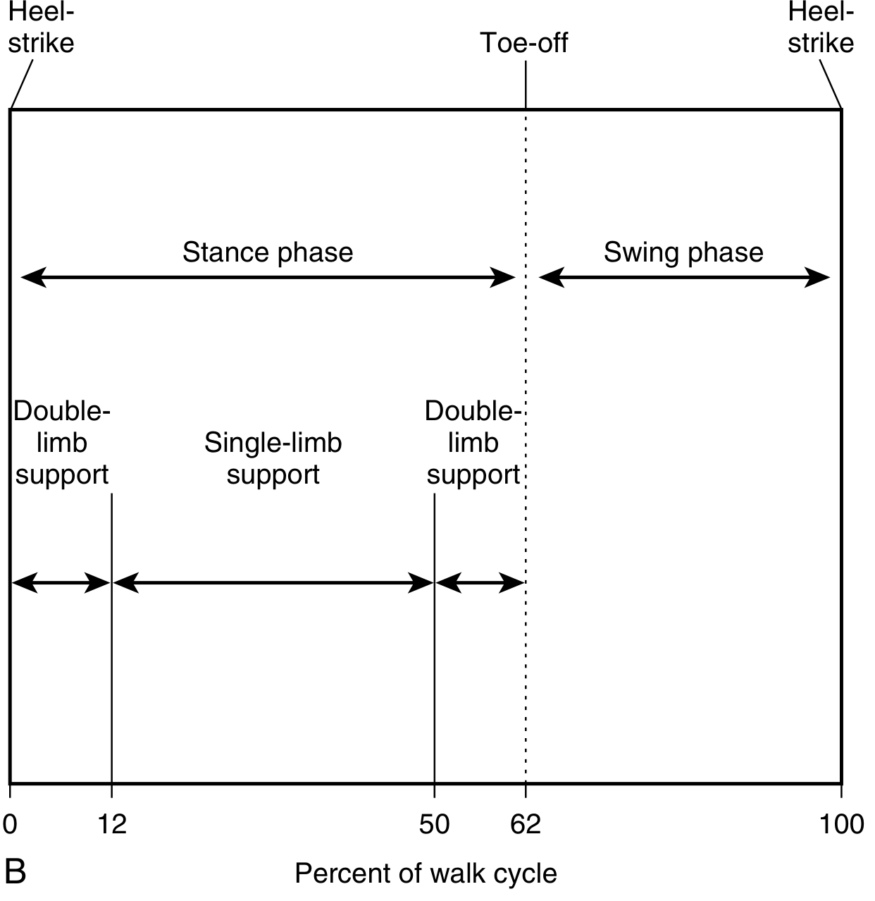FIG. 6.10A — Normal phases of the gait cycle. — Miller's Review of Orthopaedics, 9th Ed.