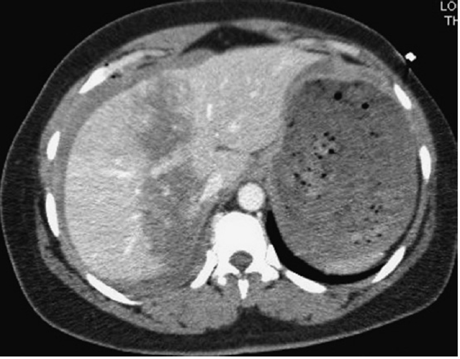 Figure — Gunshot injury to the liver successfully managed nonoperatively: