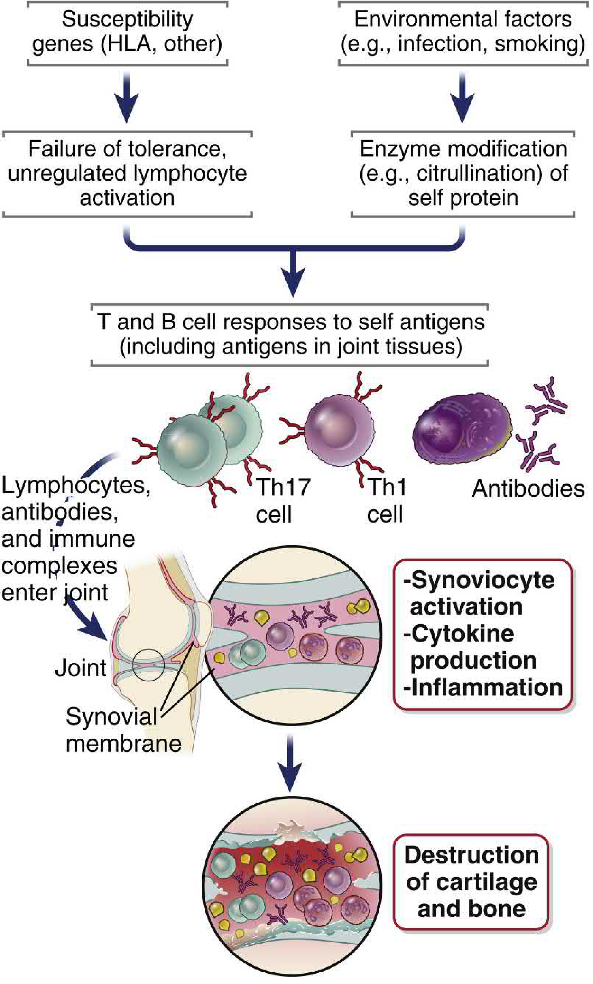 - Th17 and Th1 cells secreting cytokines that recruit leukocytes into joints