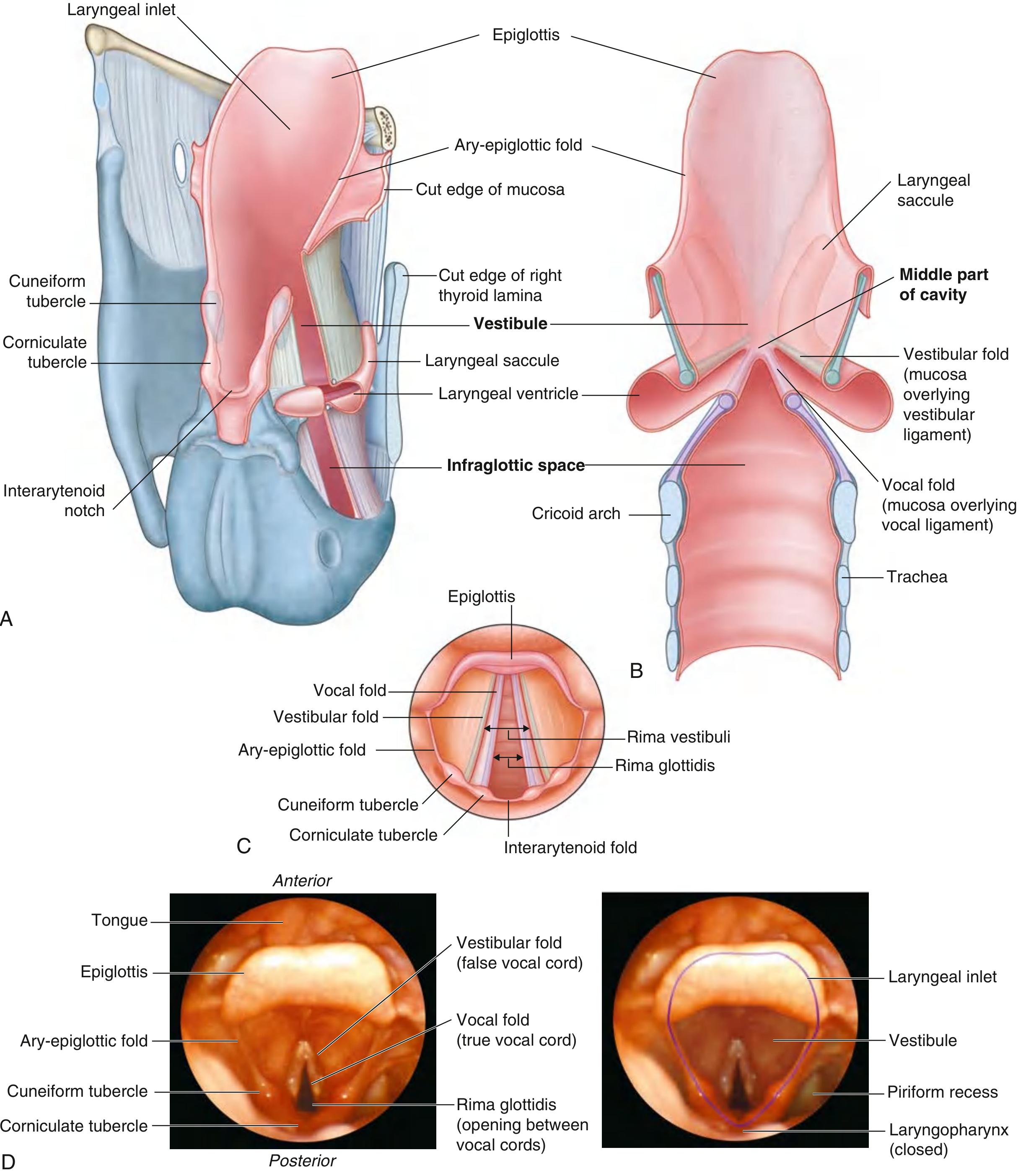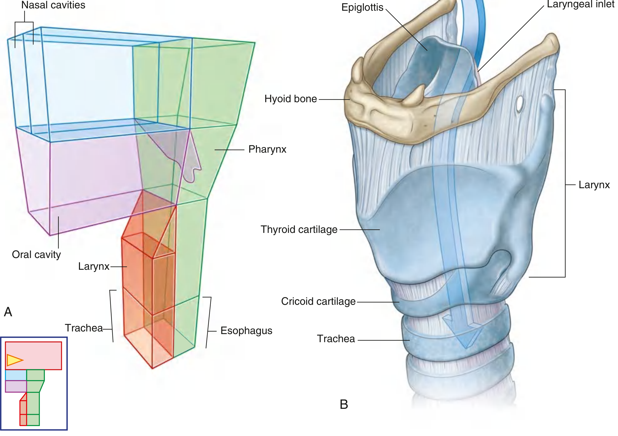 The larynx is a mobile, musculocartilaginous organ between the pharynx and trachea (approximately C3 to C6 in adults). It has 3 core functions: airway patency, airway protection, and phonation.