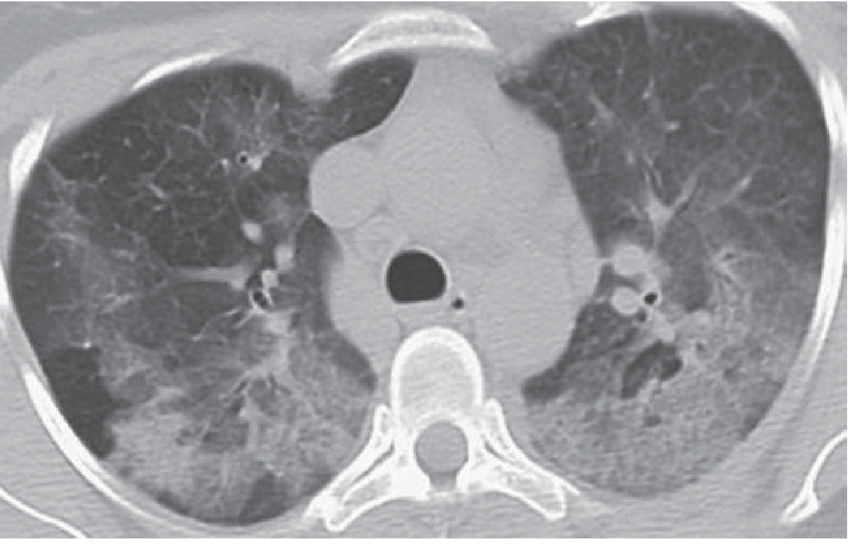 - CT appearance can mimic pulmonary edema or DAD