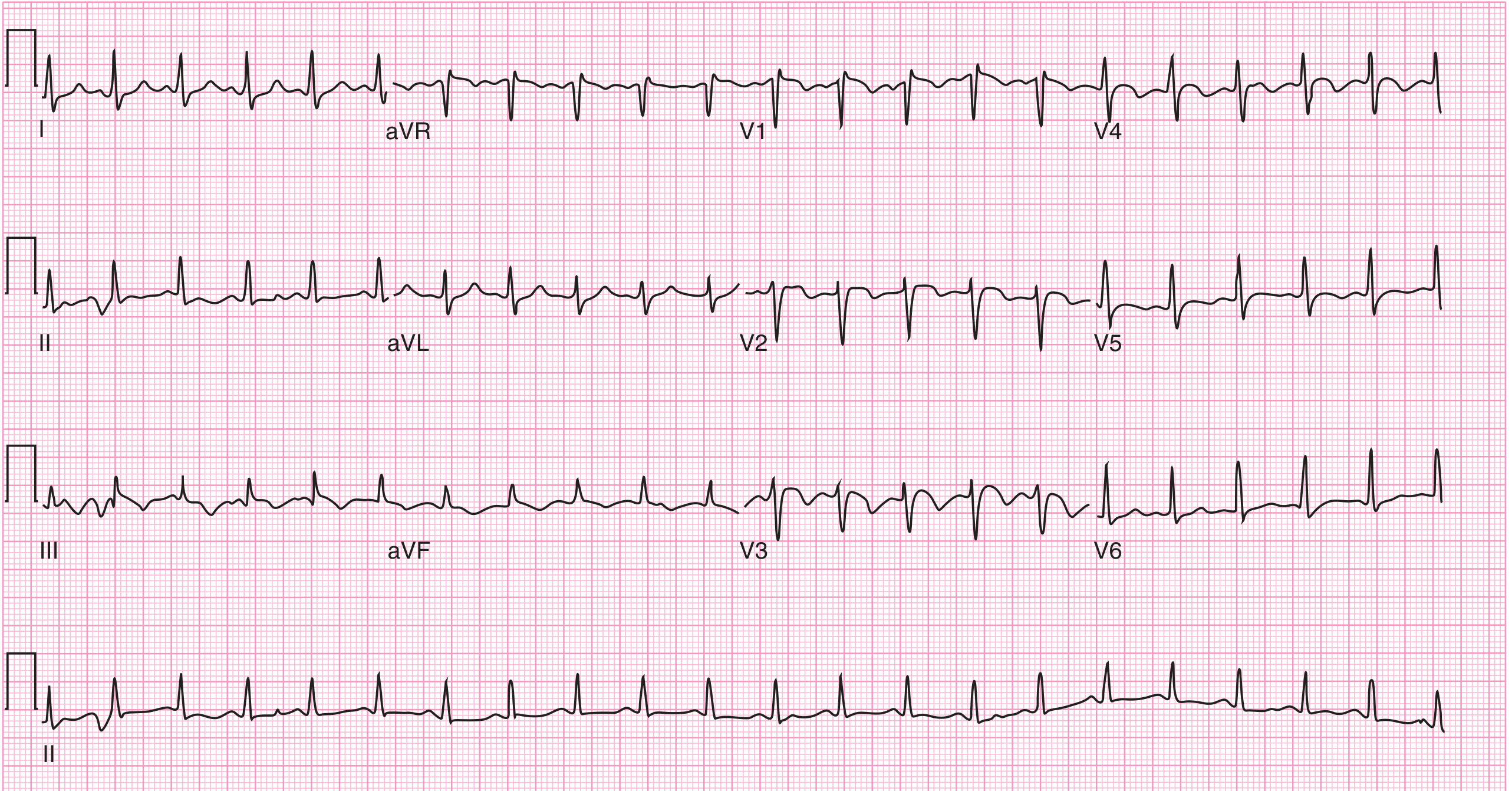 | Hyperkalemia | Tall, peaked, narrow ("tented") T waves across all leads + tachycardia | Must rule out — spicy fish + vomiting = electrolyte loss |