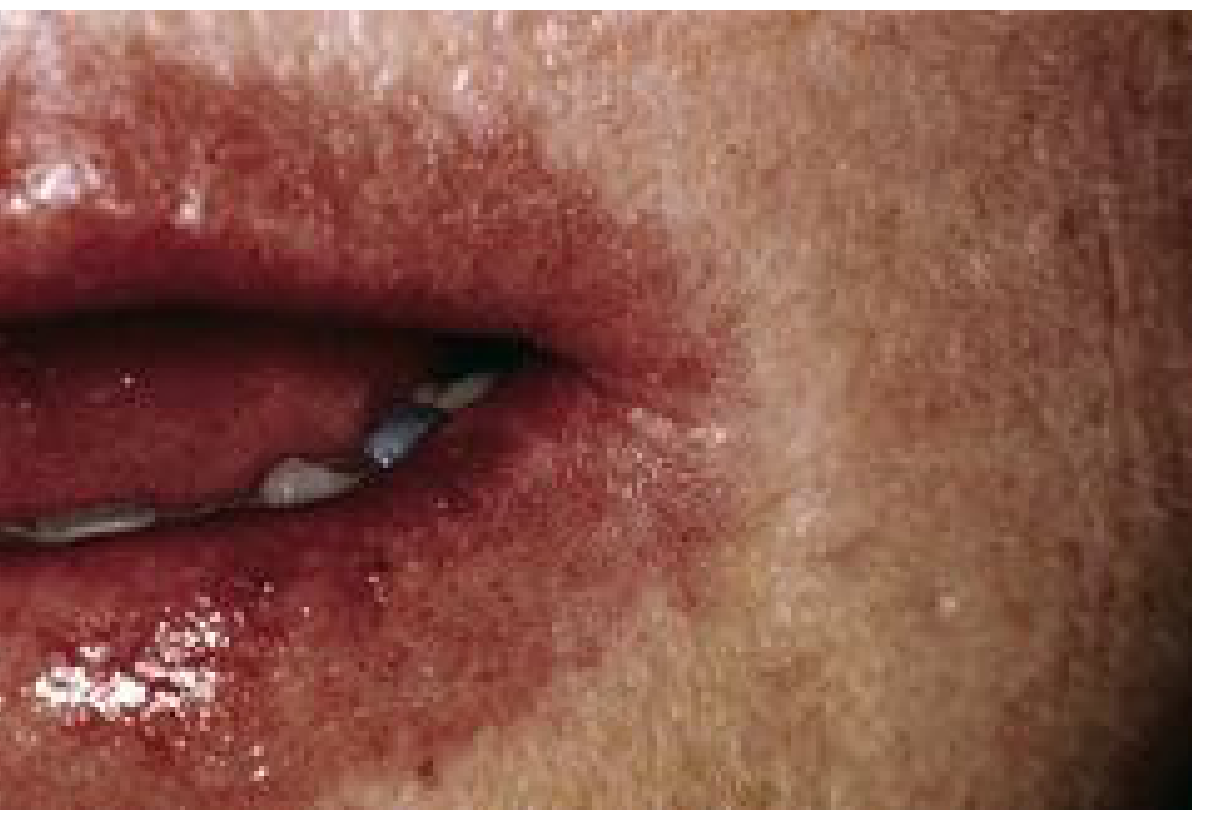 - Seborrhoeic dermatitis — particularly affects the face including perioral area