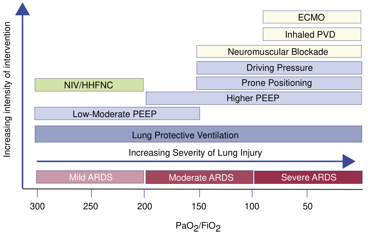 | Severity | P:F Ratio | PEEP Requirement |