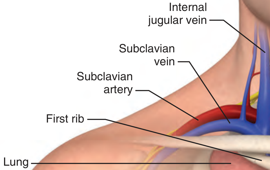 - Keep needle nearly parallel to clavicle — this avoids the subclavian artery (posterior) and lung (caudal)