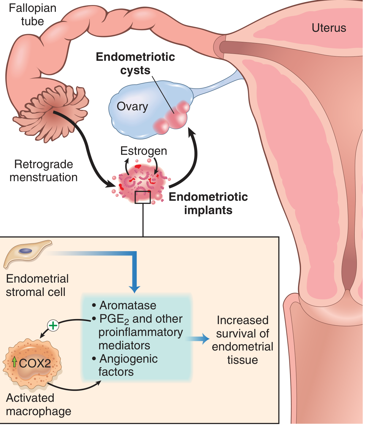 | Regurgitation (Sampson's) | Retrograde menstrual flow implants endometrial tissue at ectopic pelvic sites via the fallopian tubes |