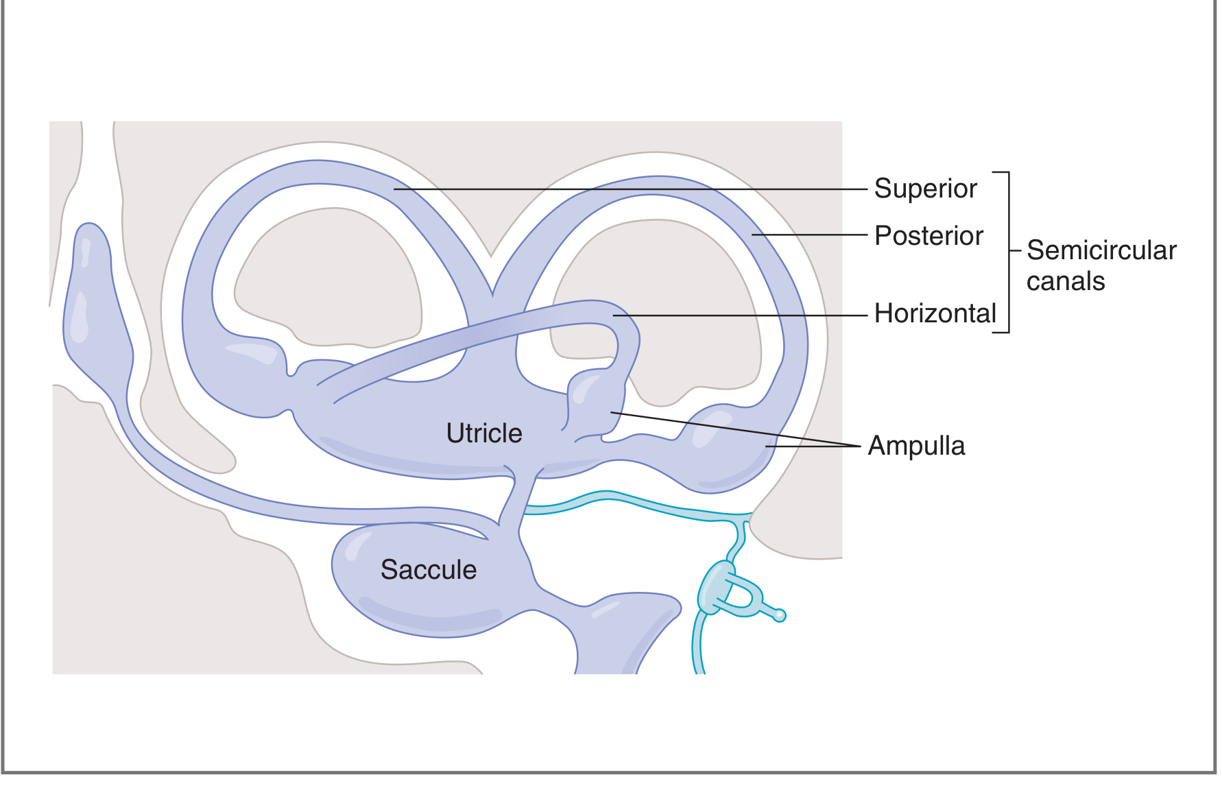 Semicircular canals (3) — detect angular (rotational) acceleration: