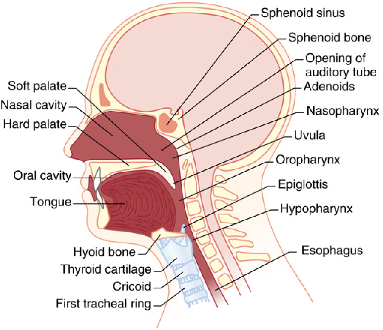 Connects the middle ear with the nasopharynx (~35 mm long in adults). Normally closed at rest, opening with swallowing and yawning via contraction of the tensor veli palatini. Functions: