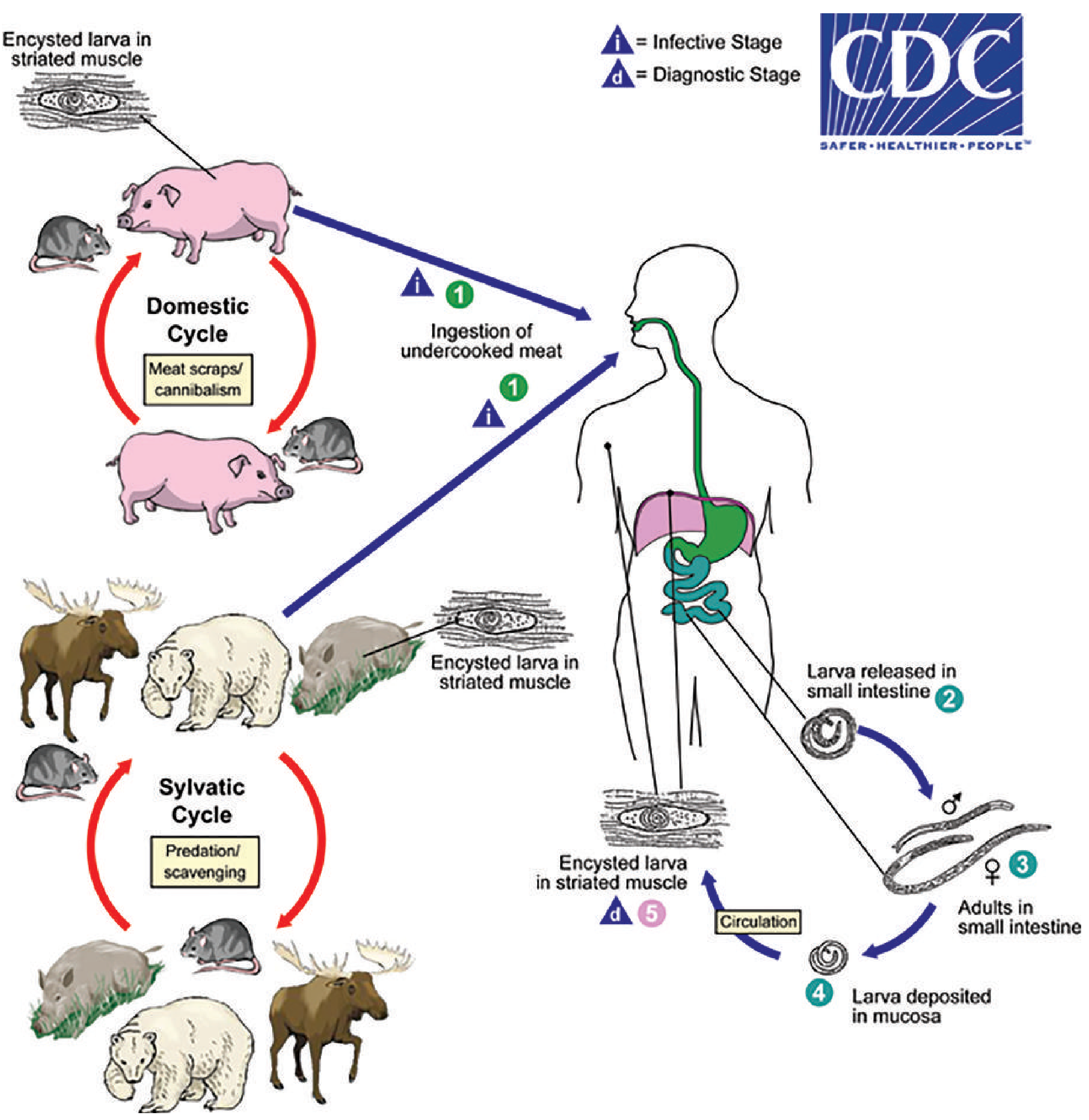 - Sylvatic cycle: bear, wild boar, walrus, horse meat (via contamination or adulteration).