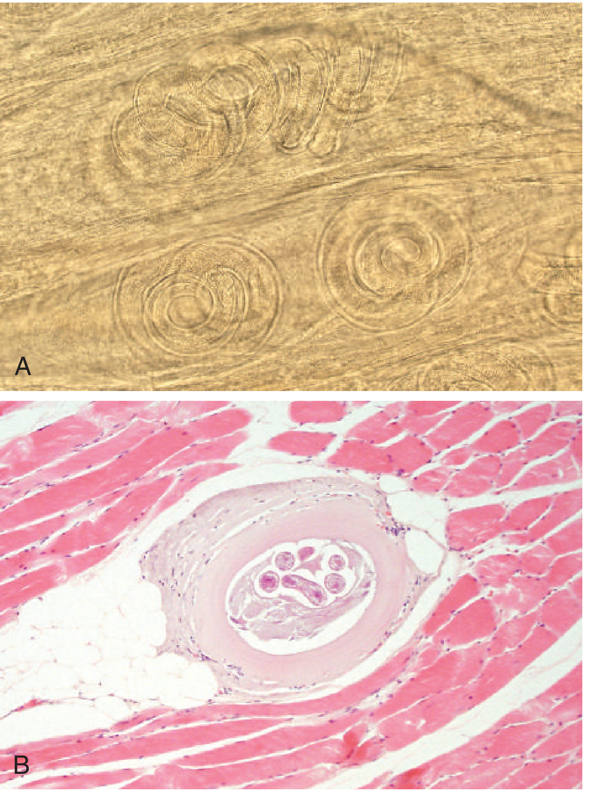 | Pathogen | Cestode larva (Echinococcus spp.) | Nematode (Trichinella spp.) |