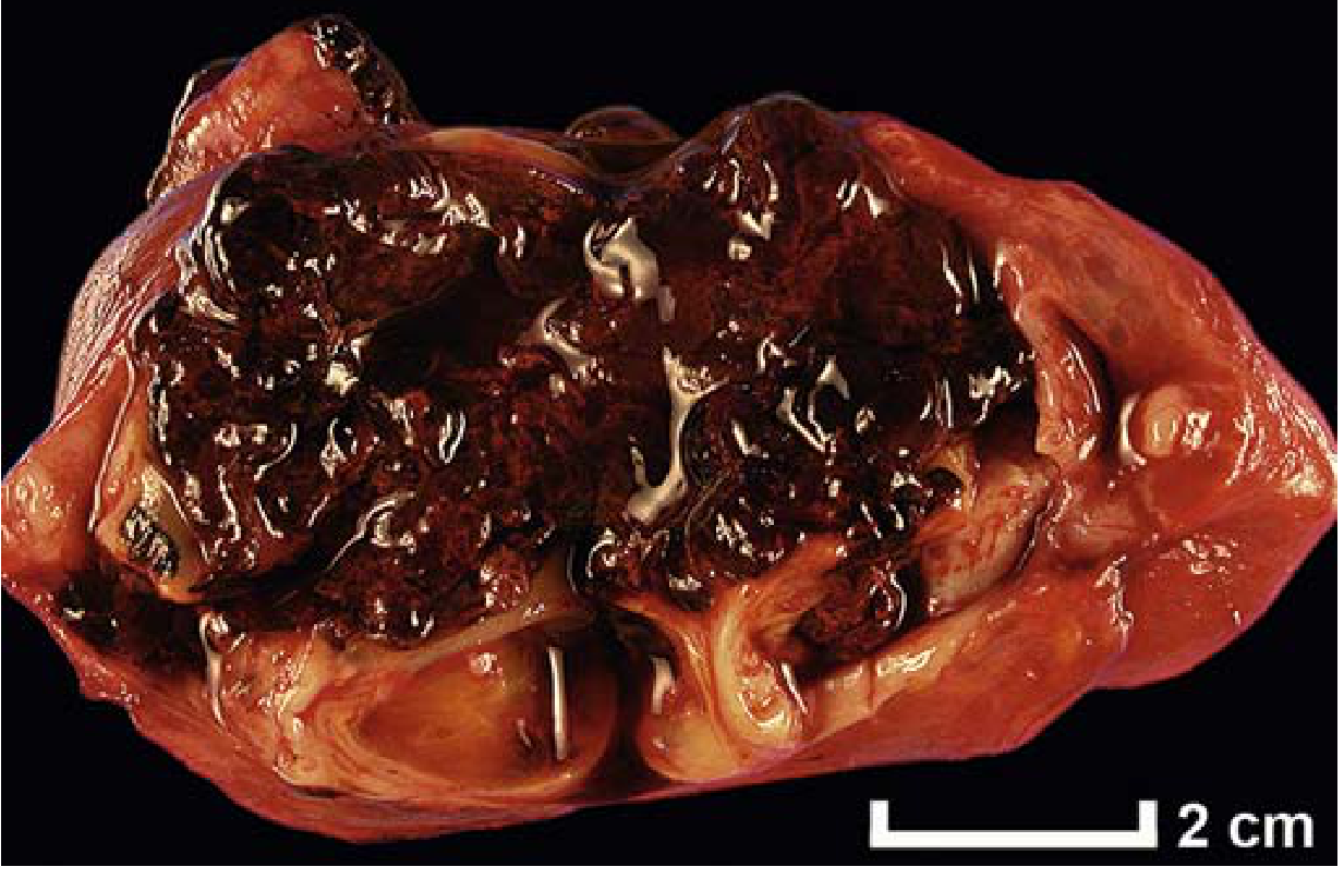 Ovarian endometriosis (chocolate cyst) — Robbins & Kumar Basic Pathology