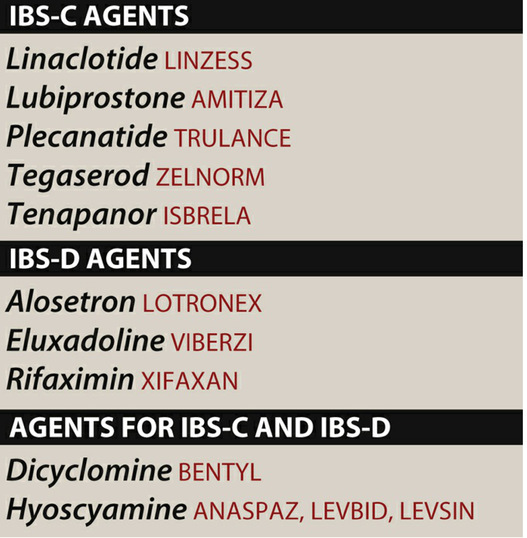 | Plecanatide (Trulance) | Guanylate cyclase-C agonist | Same as linaclotide | Also approved for chronic idiopathic constipation |