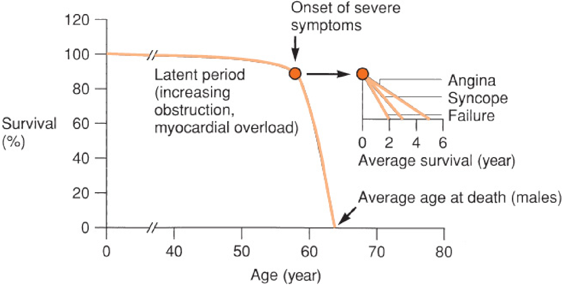 Natural history of aortic stenosis without operative treatment — onset of symptoms identifies patients at high risk of death over 2–5 years. — Mulholland and Greenfield's Surgery