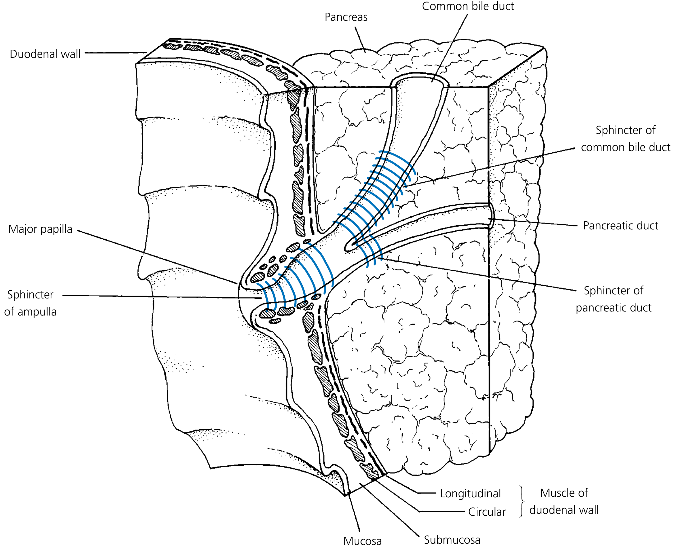 - Sphincter of the ampulla — surrounds the common channel