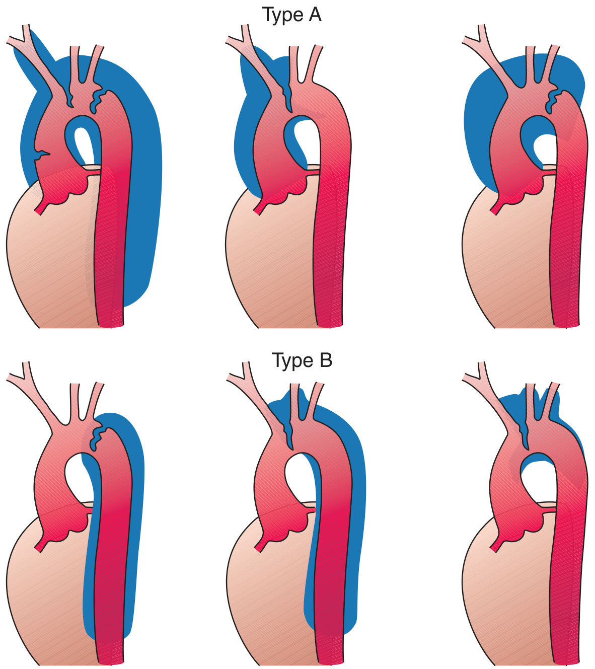 | A | Involves ascending aorta (with or without extension distally) | Surgical emergency |