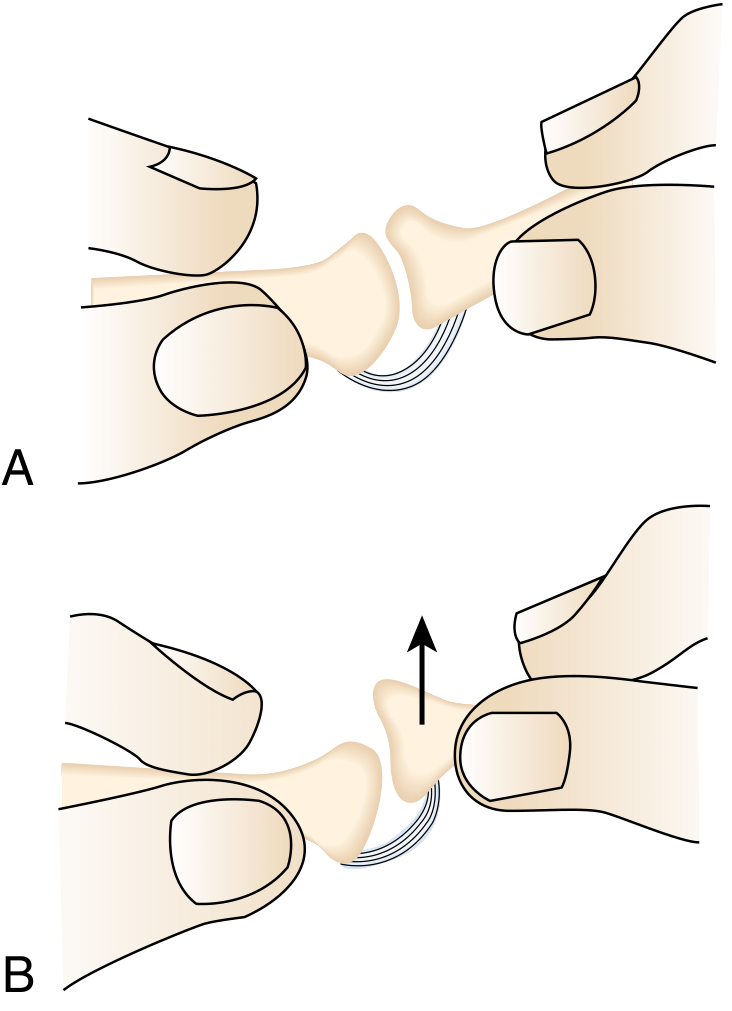 - Grasp the proximal phalanx of the affected digit between thumb and index finger of the other hand
