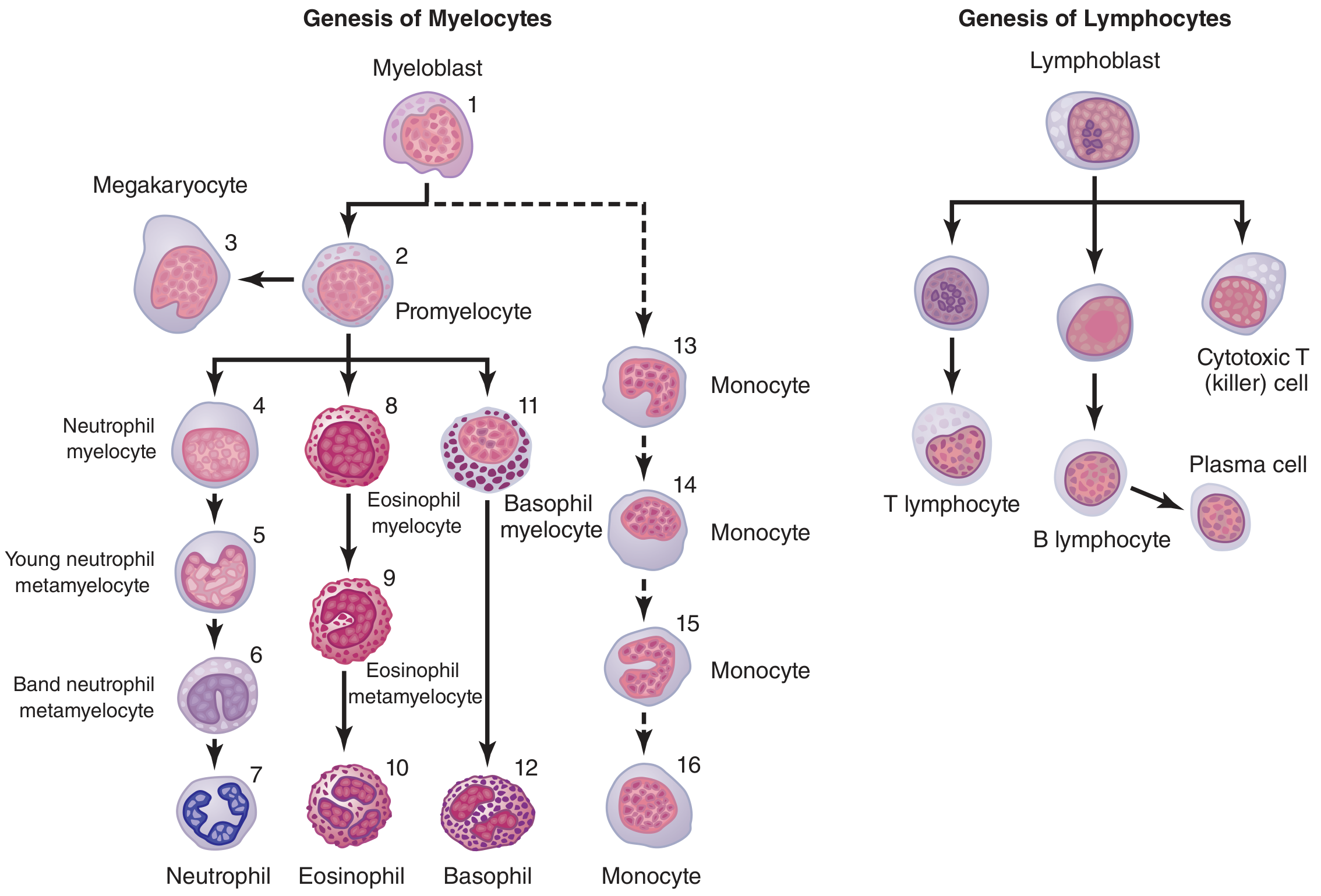| Agranulocytes | Monocytes, Lymphocytes |
