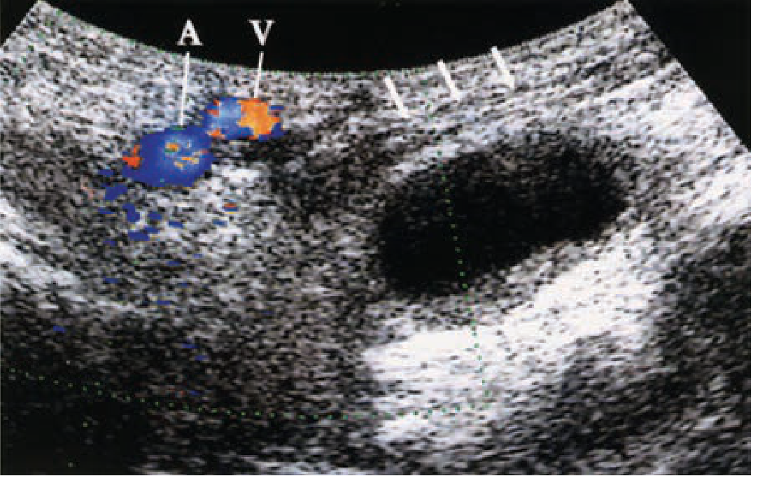 | Femoral artery aneurysm | Fusiform/saccular dilation with turbulent flow on Doppler |