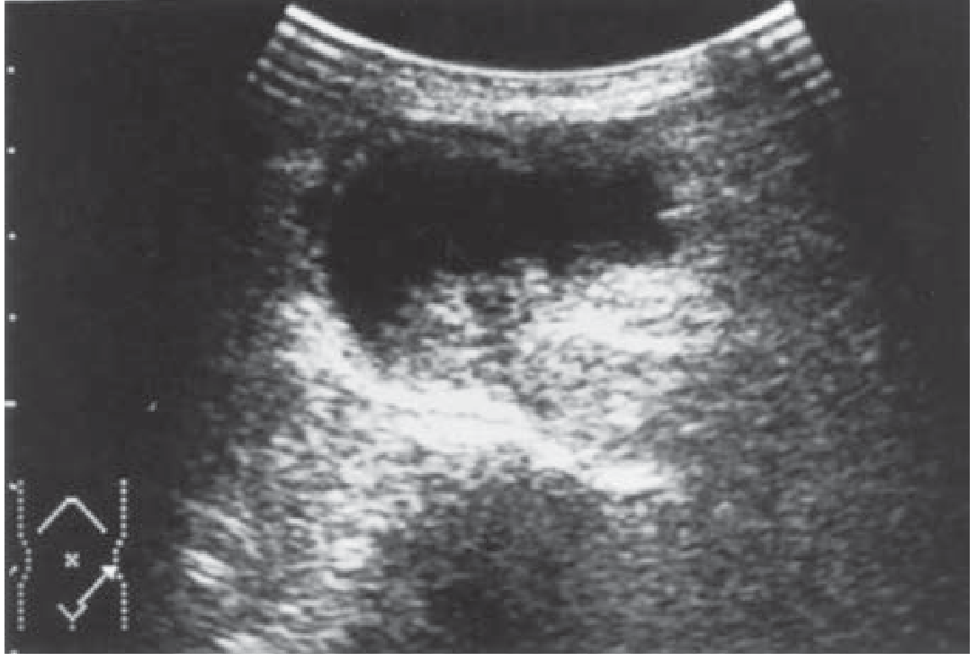 | Posterior acoustic shadowing | Air in bowel lumen |