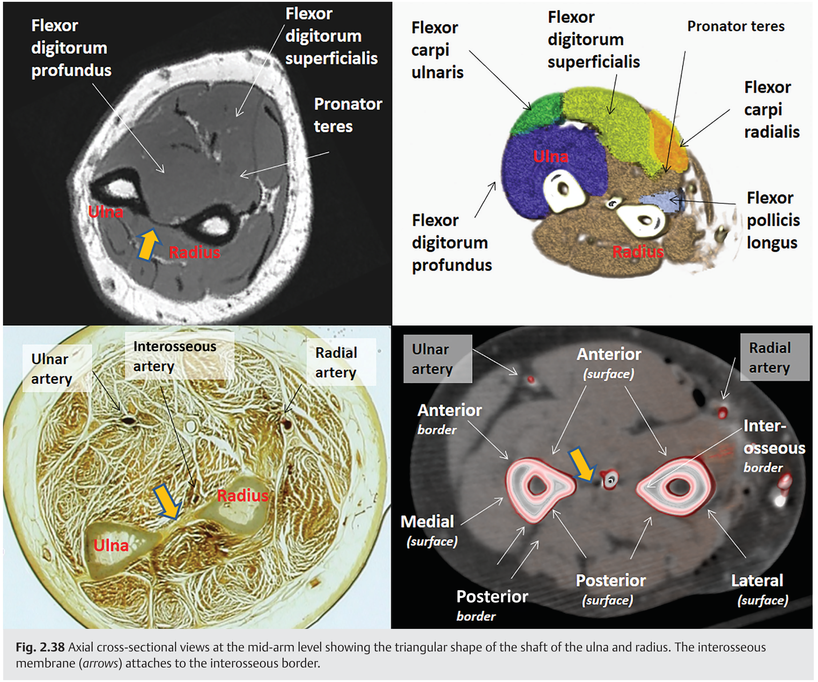 ulna bone complete anatomy anterior posterior view labeled medical illustration