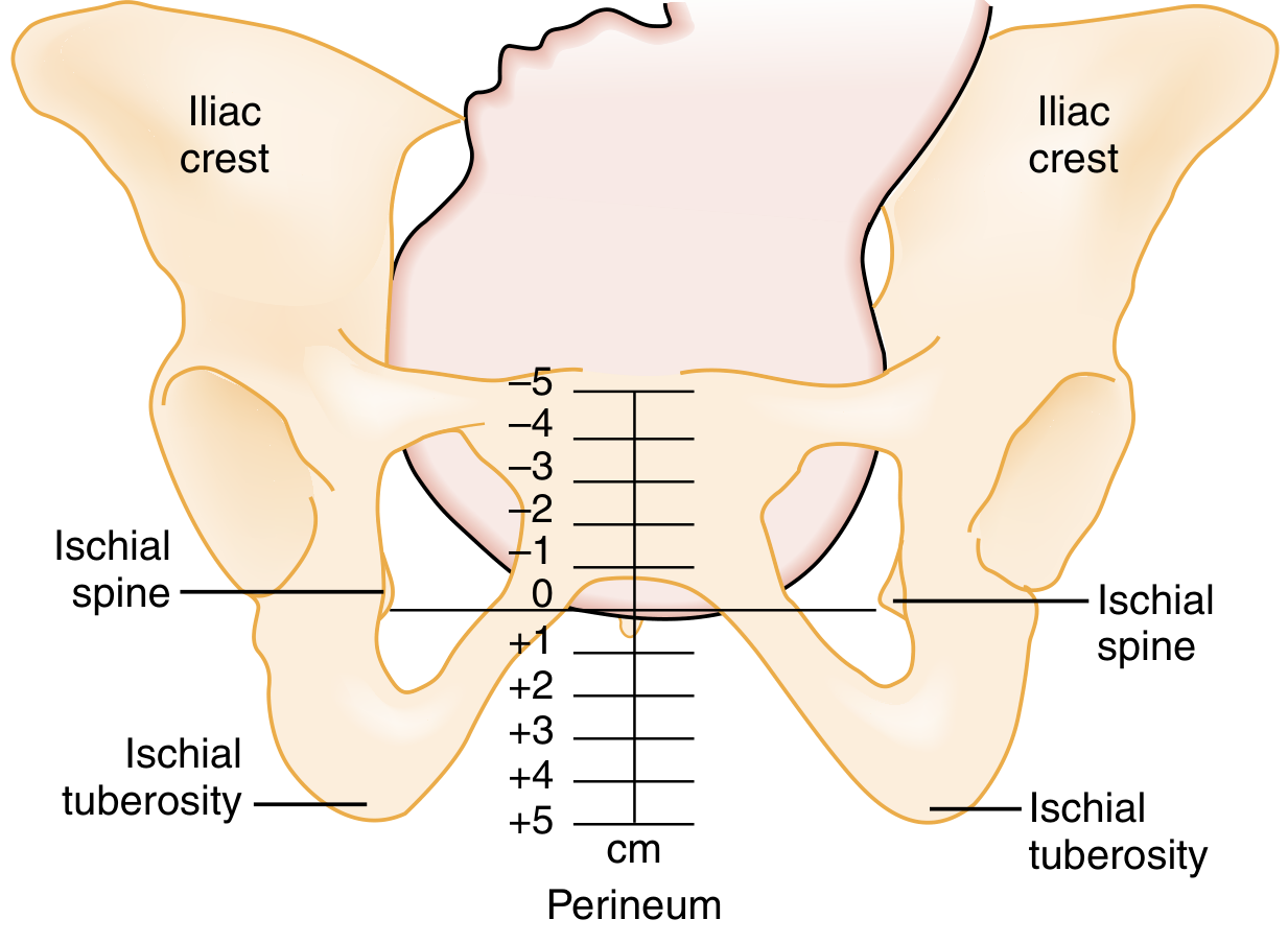 - The level of the ischial spines = Station 0 — the reference point for measuring fetal descent.